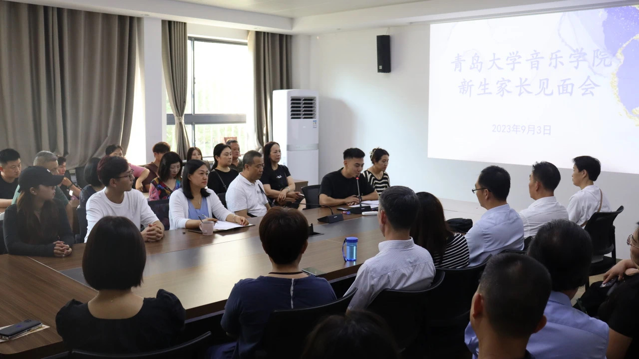 9月3日下午,学院在德雅楼会议室召开2023级新生家长见面会,音乐学院党委副书记孙建华、学工办主任迟晓波、2023级辅导员朴博文参与会议。孙建华向家长表示欢迎,并向家长们介绍了音乐学院的基本情况。在互动交流环节中,家长们向学院领导和老师进行提问,就关心的问题进行了有效沟通。