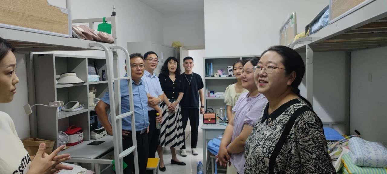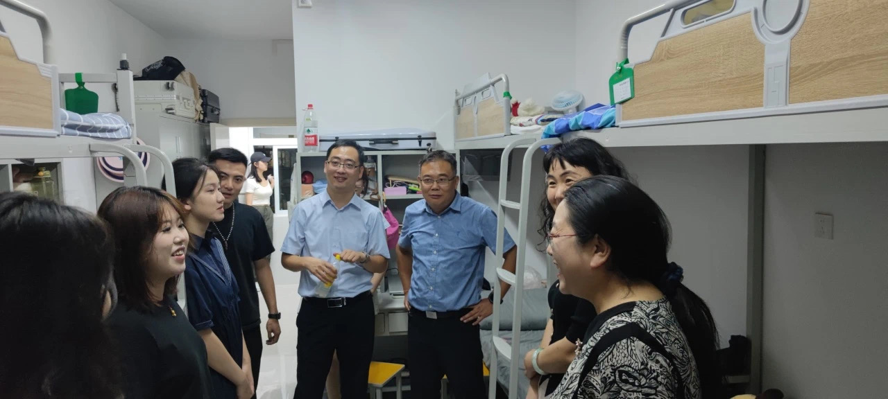 9月3日晚,音乐学院党委书记李建新、院长王静怡、副书记孙建华、副院长董博超及辅导员朴博文走访了新生宿舍,领导老师亲切慰问同学们是否适应校园生活,并叮嘱同学们要增强安全意识,预防诈骗。