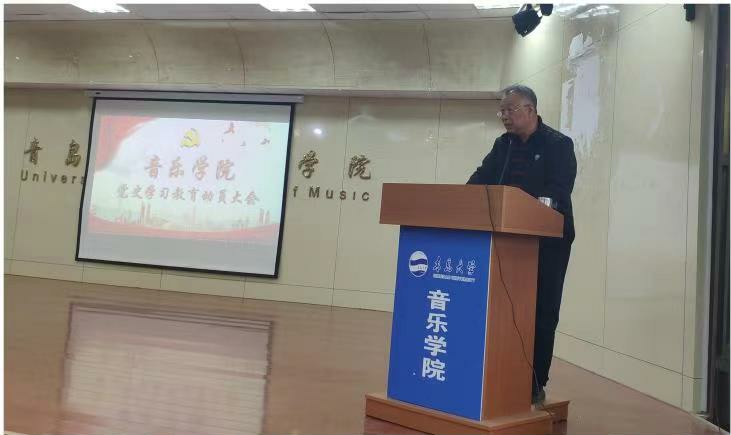 姜世安就音乐学院做好党史学习教育作动员讲话,提出四点要求:一是切实提高政治站位,从全面做到“两个维护”的高度充分理解党史学习教育的重大意义;二是要准确把握党史学习教育对象;三是要把握好党史学习教育具体步骤和规定动作;四是要结合学院工作实际扎实开展学习教育。针对学习教育工作,姜世安进一步强调,要加强学习教育的组织领导,高质量完成学校和学院庆祝建党100周年各类演出任务;要结合学习教育进一步锤炼师德师风和院风、学风;要通过学习教育进一步促进学院事业发展。最后,姜世安结合个人学习体会,以《明理、增信、崇德、力行——学习党史一点体会》为题,为参会党员上了一堂微党课。