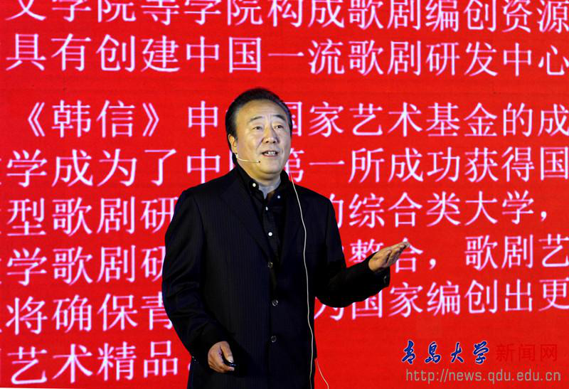 高度重视并能够举全校之力来促进歌剧艺术发展,这是非常有情怀、非常有高度、非常有目标的体现,值得大家敬佩。歌剧艺术是音乐艺术皇冠上明珠,是一个国家文化实力的体现,也是一个城市、一所大学综合实力的体现,但是打造一部大型歌剧是一件非常难的事情,不仅需要具备相应的时代背景,也需要具备综合文化实力,还需要具备很多具体的专业条件。歌剧《韩信》作为国家艺术基金项目,第一次授予一所非专业艺术院校,这充分证明了爱情岛