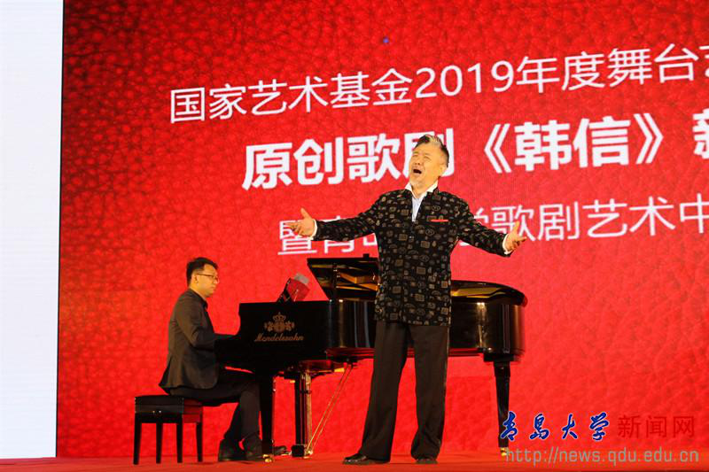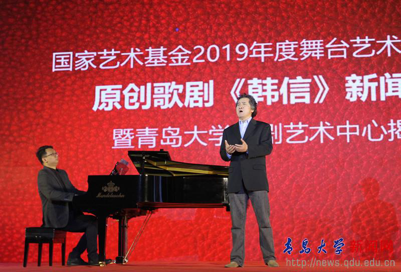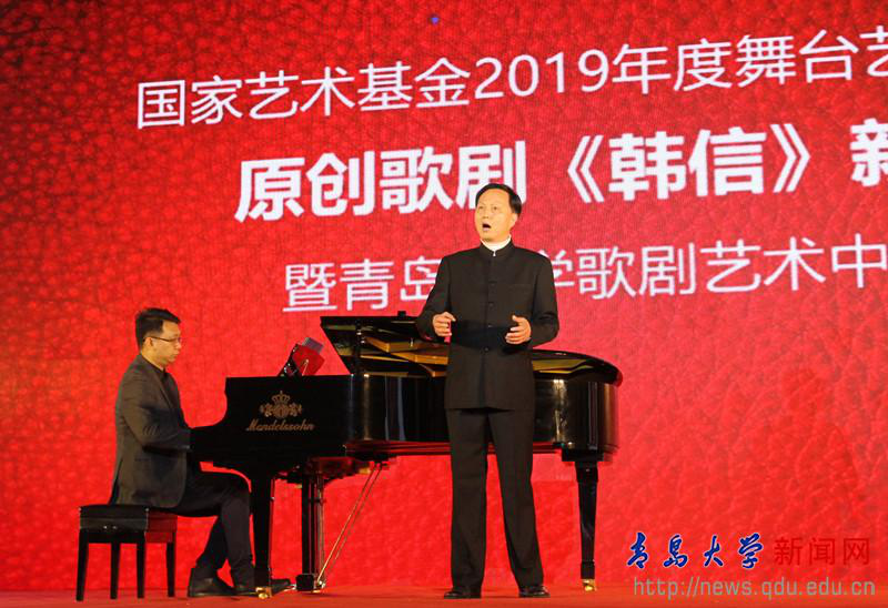 仪式上,歌剧《韩信》主创者、音乐学院声乐系主任王景彬介绍了歌剧《韩信》创作的时代背景、主旨、思路、意义和价值,介绍了“爱情岛