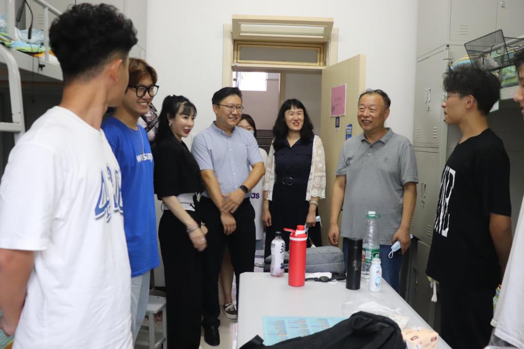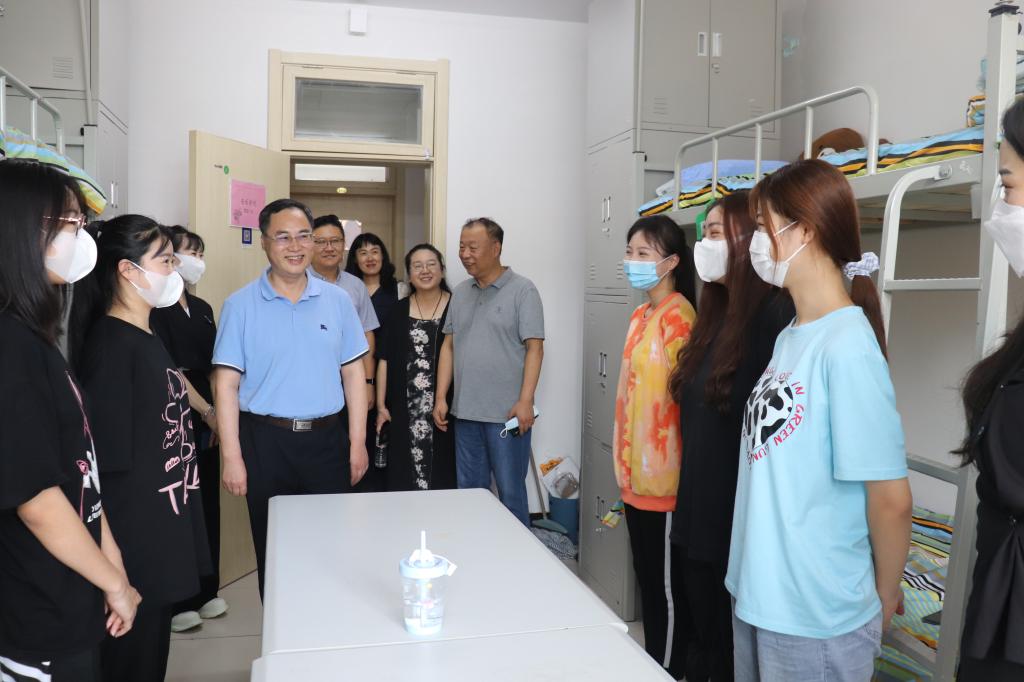 9月9日下午,爱情岛 党委常委、副校长李军来到滢园新生宿舍走访慰问我院2021级新生。学院党委书记姜世安、院长王静怡、副书记司现鹏、副院长董博超、李晓囡和新生辅导员温丽陪同走访。