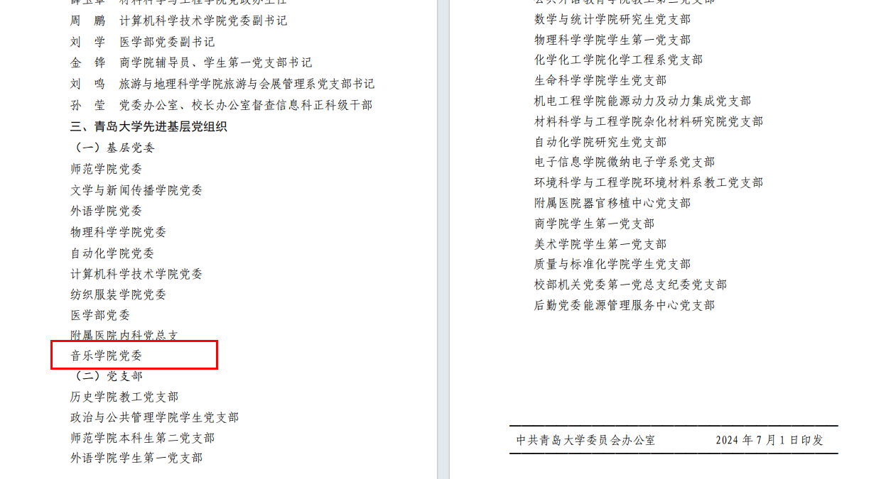 在中国共产党成立103周年之际,为表彰先进、凝聚力量,进一步激励广大党员干部不忘初心、牢记使命,真抓实干、担当作为,充分发挥先进典型的表率示范作用,学校评选表彰了一批先进集体和优秀个人,其中,音乐学院党委获评“爱情岛