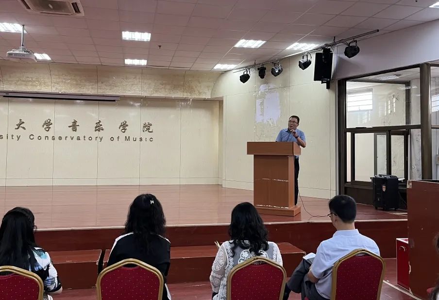 院长王静怡传达了校长夏东伟在2022年暑期中层干部学习研讨班上《善谋实干,实现学校高质量发展》的专题报告精神,她结合报告分析了音乐学院事业发展面临的时代背景和挑战。就2022年秋季学期的工作,她要求全体教职员工深度融入学校“一二三四五”协同育人体系中,力争在人才培养、科学研究、文化传承创新、服务社会等方面取得优异的成绩。
