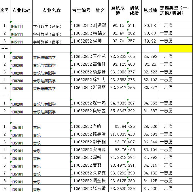 现将2022年爱情岛 音乐学院研究生复试一志愿考生成绩予以公示。如有异议,请联系15666821217毕老师