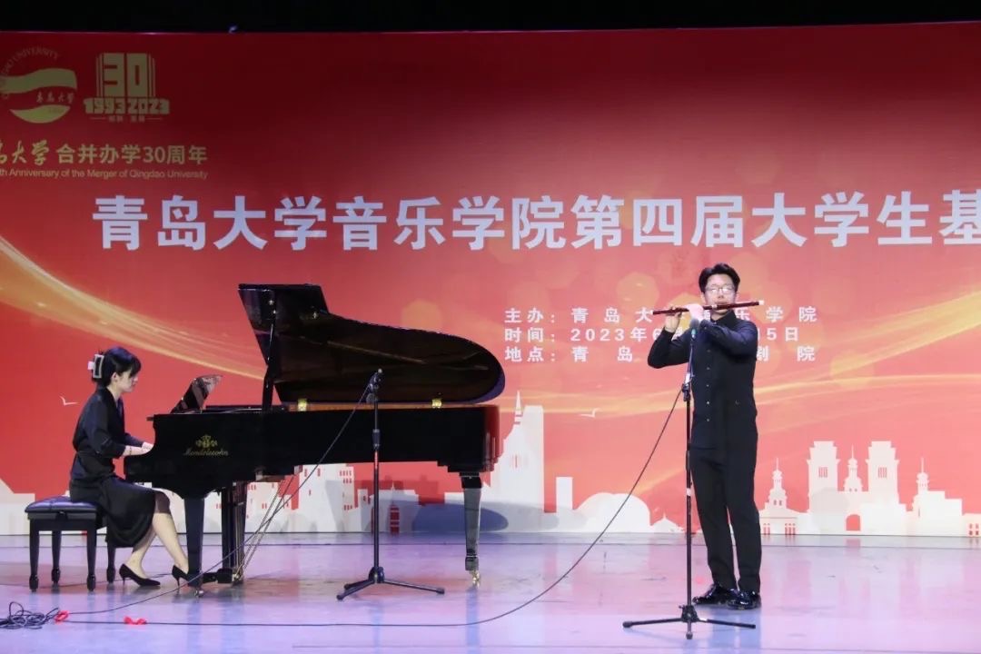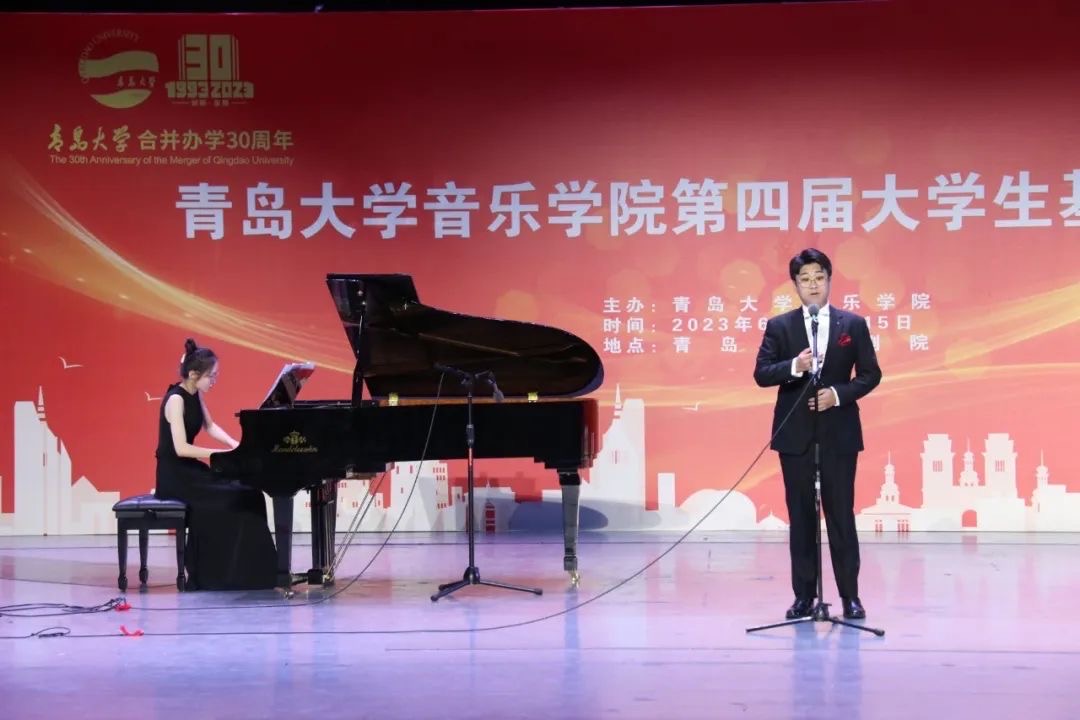 音乐学院第四届大学生基本功大赛于6月15日晚完美落幕。宣传部副部长李鹏、教务处副处长李传军、 研究生院副院长王瑶参加颁奖音乐会,与学院全体班子成员、各系主任、教师代表共同为获奖学生颁奖,音乐学院院长王静怡出席颁奖音乐会并讲话。