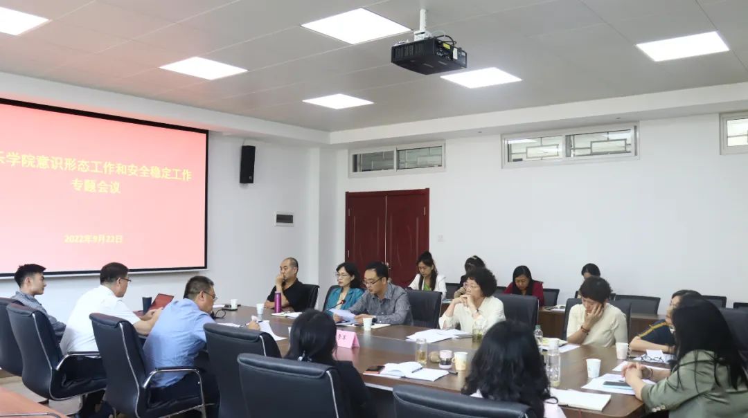 9月22日下午,我院在德雅楼二楼资料室召开安全稳定工作会议,学院党政领导班子、各系部主任、内设机构负责人、全体辅导员及教师代表参加会议,会议由学院党委书记李建新主持。