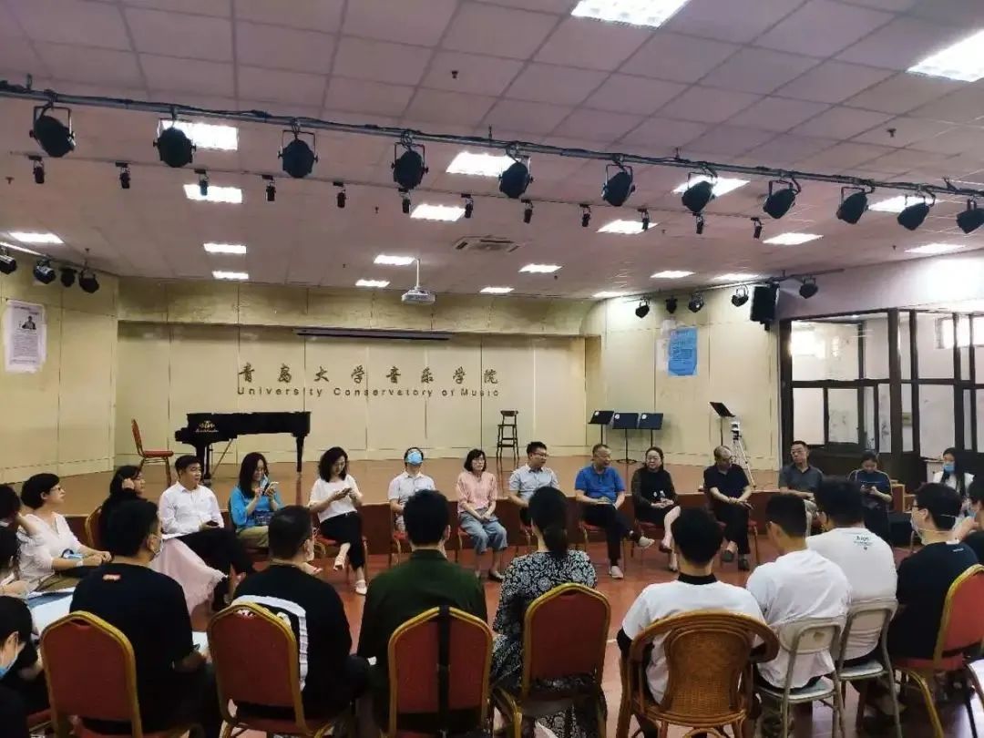 为深入了解2020届毕业班返校学生的学习和生活情况,及时有效地为学生提供优质服务,6月11日下午,音乐学院在德雅楼103排练厅召开了返校毕业班学生座谈会,院党委书记姜世安,院长王静怡,副院长孟雷、王文俐,院长助理李晓囡,各教学系教师代表,毕业班辅导员及2020届返校毕业生代表20余人参加此次座谈会。院党委副书记司现鹏主持座谈会。