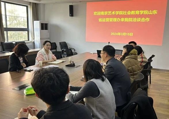 社会教育学院山东省运营管理办主任王晨瑜一行三人来访我院洽谈合作,院党委副书记孙建华、副院长董博超、学工办主任迟晓波、学生党支部书记朴博文等人参加座谈交流。