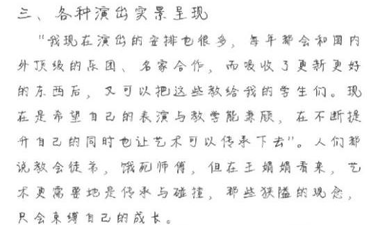 艺术经历:王娟娟的演奏风格博采众长,声情并茂,弓弦凝练,音色深邃,曾多次举行国内及国际巡演,主要国家包括:德国、奥地利、法国、英国、比利时、瑞士、荷兰、日本、韩国、菲律宾等地,并多次在欧洲、上海、青岛成功举办个人独奏音乐会,与胡琴大师张玉明教授共同录制的“爱艺术——跟着全世界艺术家学艺术”专题讲座,已上线并全球发行。曾举办中国民族器乐艺术专题讲座百余场。2019年、2020年两年期间在青岛电台、电视台直播二胡演奏及理论课程近百期。