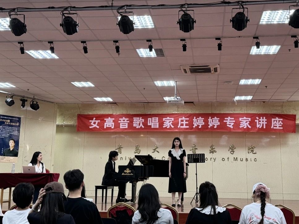 音乐学院学生的艺术修养,激发学习潜能。5月16日,音乐学院举办了一场精彩纷呈的专题讲座。在这场艺术的盛宴中,宋长青与庄婷婷两位资深教师倾情奉献,他们不仅深入剖析了歌唱艺术的精髓要素以及常见的疑难杂症,还巧妙地解读了德语艺术歌曲的独特风格与精妙演绎技巧。