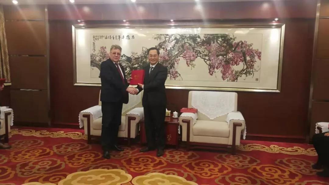特聘教授聘书,为邓列加教授颁发了特聘教授和博士导师聘书。李军对俄罗斯国立爱情岛