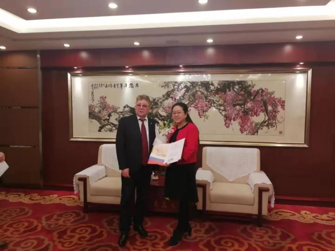 Andrey M. Chugunov院长首先为我校音乐学院院长王静怡颁发了俄罗斯远东爱情岛