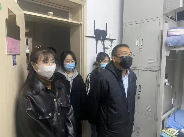 走访过程中,李建新要求同学们要一定要严格遵守疫情防控期间的各项规定,正确佩戴口罩,落实好“一日三检”和体温上报,按时参加核酸检测和抽检。宿舍要做到勤通风、勤消毒,注意用电安全,保持宿舍卫生。同时,他还叮嘱同学们要安心学习,如有特殊情况第一时间及时上报,做到“不信谣、不传谣”。同学们纷纷表示会积极遵守学校的各项要求,积极做好防疫工作,在线不停学,努力不停歇。