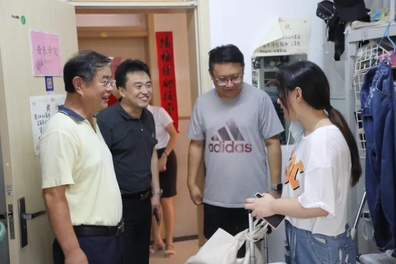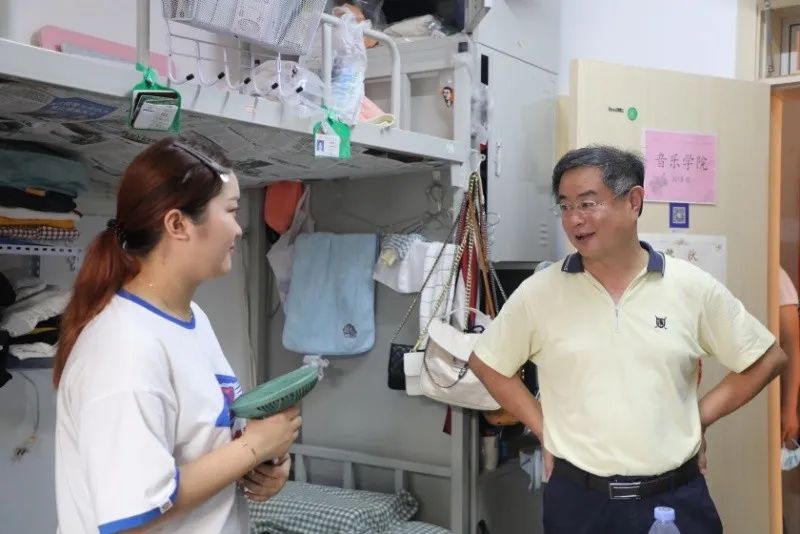 在滢园13号楼102宿舍,夏东伟校长与我院2018级音教系学生亲切交谈,关心关怀他们的身体和生活情况,叮嘱他们自觉服从学校防控规定,尽快适应返校后的学习和生活,交代工作人员要及时解决返校学生可能遇到的困难与问题。