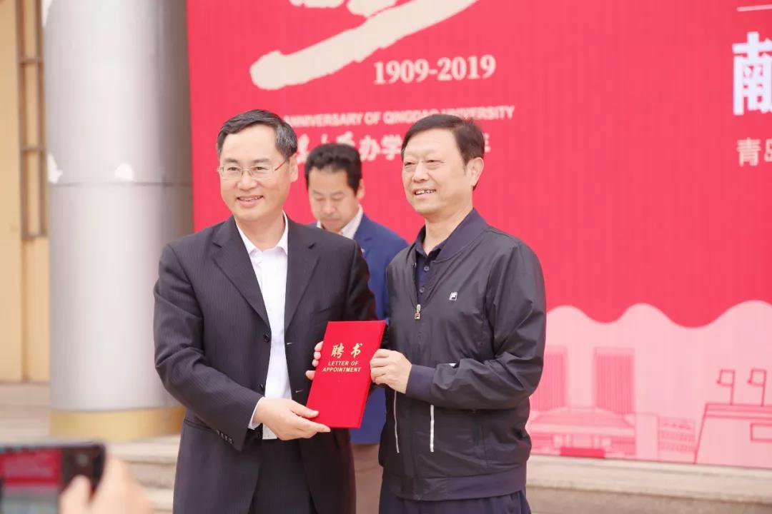党委常委、副校长李军教授为刘勇、上官超英两位校友颁发兼职教授聘书。