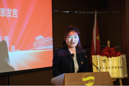 由中诚祥建设集团有限公司执行总裁刘彦辰、学生工作处处长王春共同为“实习实践基地”揭牌。