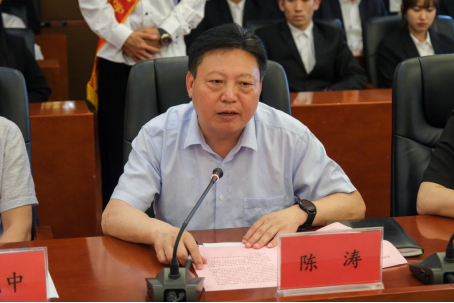 校党委常委、副校长陈涛讲话,他代表学校向出资设立奖学金的中诚祥建设集团有限公司表示衷心的感谢和崇高的敬意。向获得“爱情岛