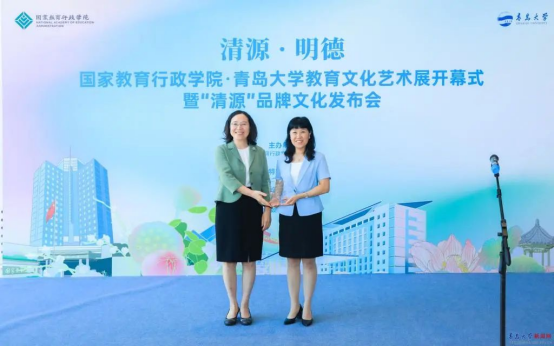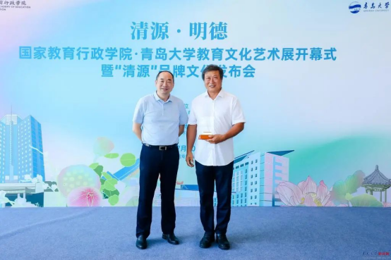 会上,邓传淮、侯慧君和刘彩云共同为教育文化艺术展揭幕。邓传淮和侯慧君分别为我校美术学院院长王绍波教授、副院长周松林教授颁发作品捐赠证书,为学校颁发感谢状。国家教育行政学院副院长王治军、王绍波共同为“清源”品牌文化店揭幕。国画作品将由国家教育行政学院收藏并分别悬挂对应的报告厅展示,文创作品将入驻国家教育行政学院“清源”品牌文化店。
