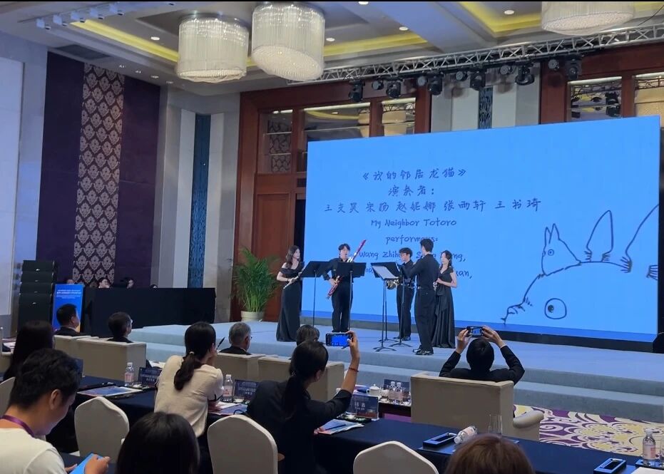 音乐表演系学子以精湛技艺献上点睛之笔。他们特别演绎了充满日韩文化特色的经典曲目:日本动画大师久石让的名作《我的邻居龙猫》主题曲旋律悠扬,唤起美好共鸣;韩国脍炙人口的民谣《桔梗谣》节奏欢快,洋溢着浓郁风情。音乐的和谐交织,瞬间拉近了60余名中日韩青年营员的距离,现场掌声雷动,艺术成为三国青少年心灵相通的纽带。