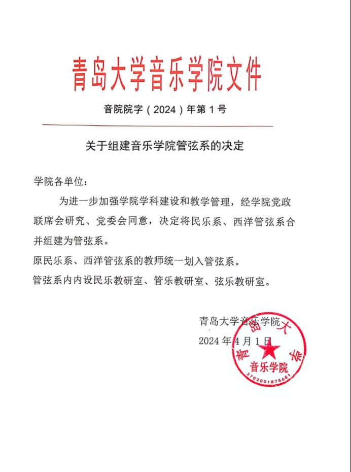 关于组建音乐学院管弦系的决定