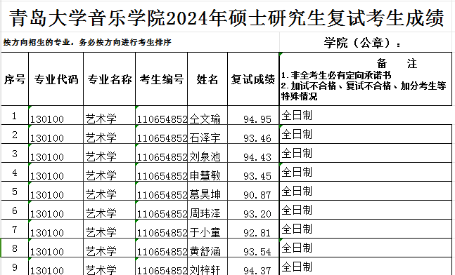 各位考生:现将2024年爱情岛 音乐学院研究生复试一志愿考生成绩予以公示。如有异议,请联系我院招生负责老师。联系人:毕老师 电话:85953738