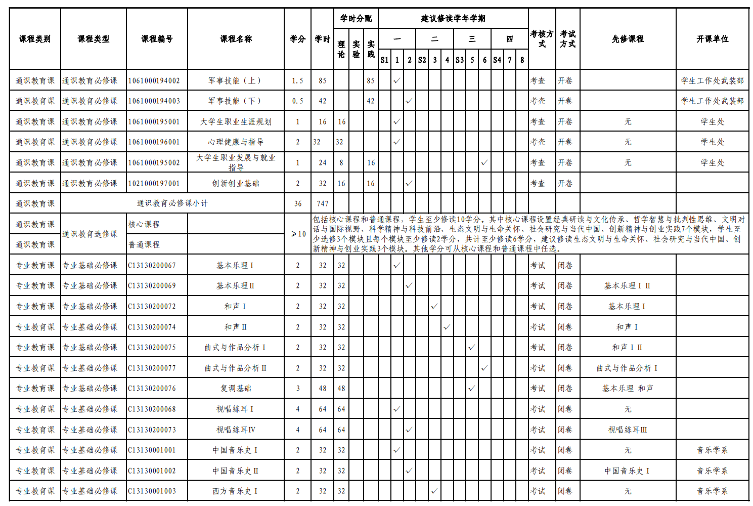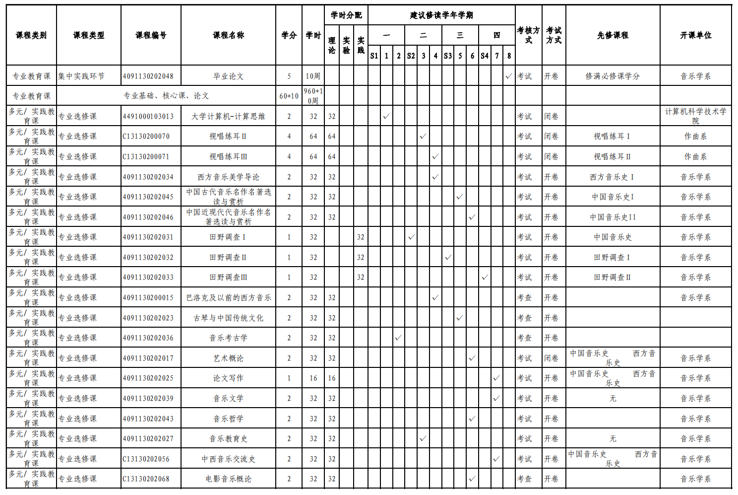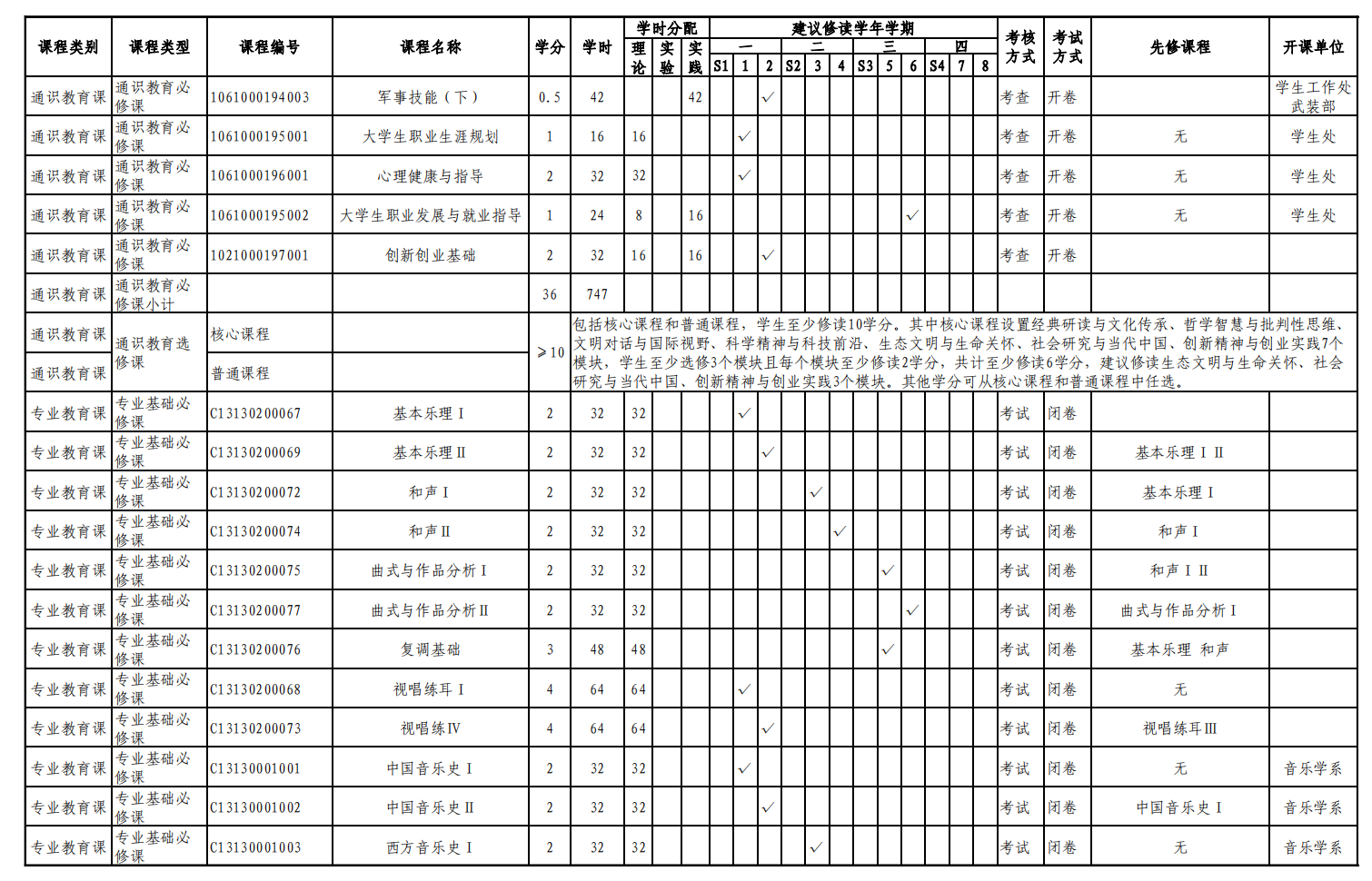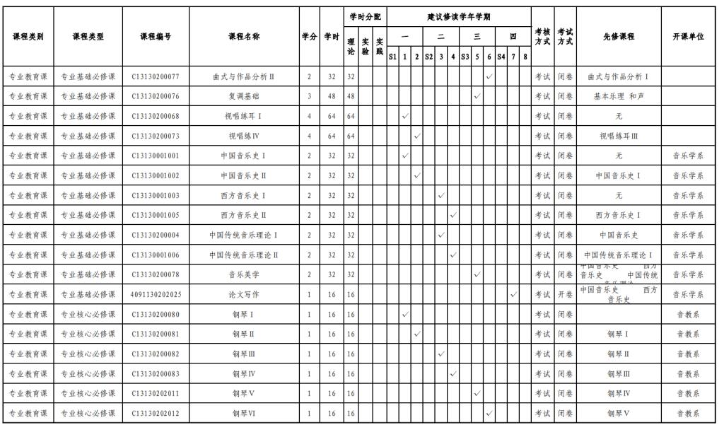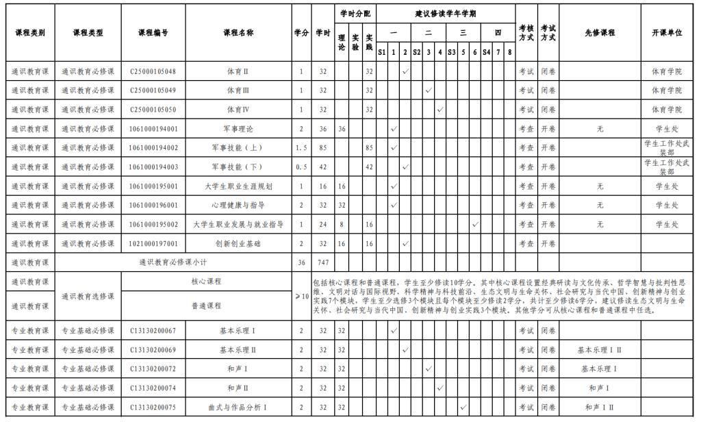 音乐学专业人才培养方案(130202)