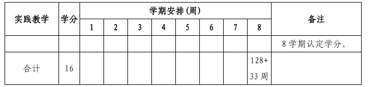 七、集中实践教学环节安排表