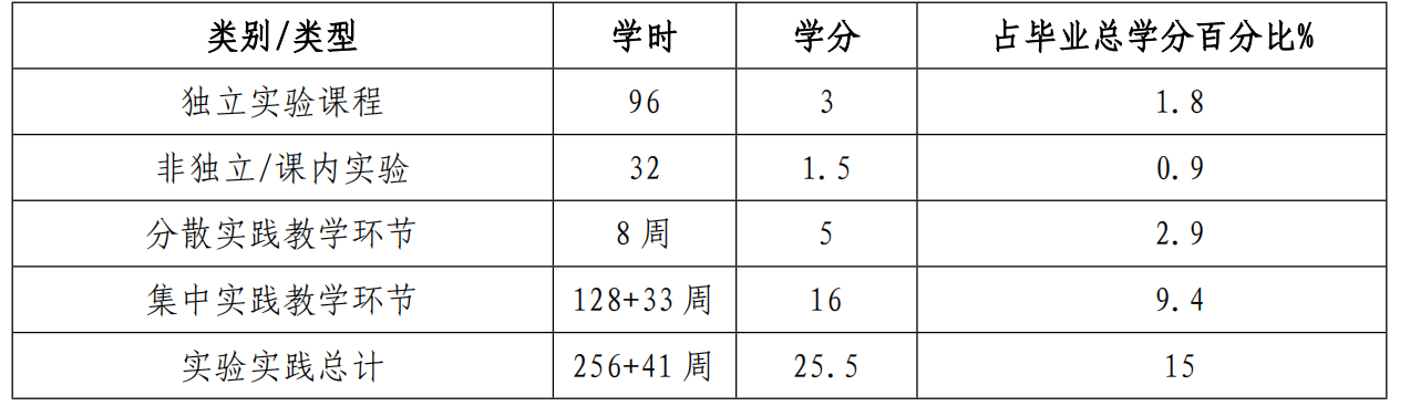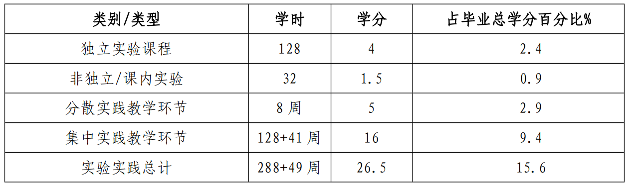 4.各环节学时学分比例