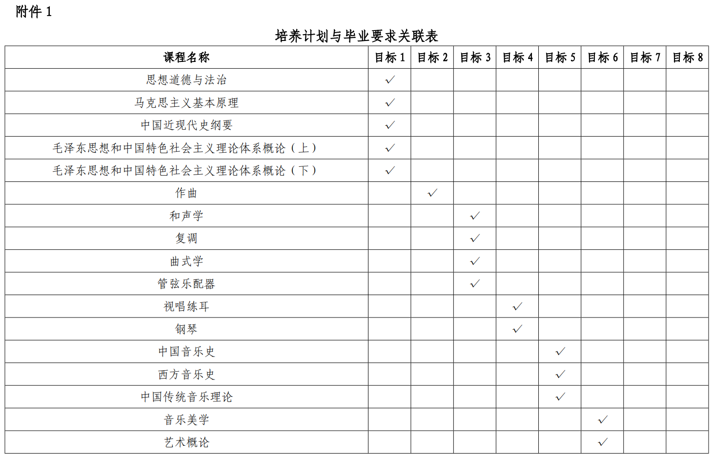 毕业要求 1:具有人文社会科学素养、社会责任感和音乐职业道德,树立正确的人生观和价值观。熟悉党和国家对文艺领域的方针政策和法规;具有独立获取知识、提出问题、分析问题和解决问题的基本能力及开拓创新精神;具有一定的科学研究和实际工作能力,具有一定的批判性思维能力;