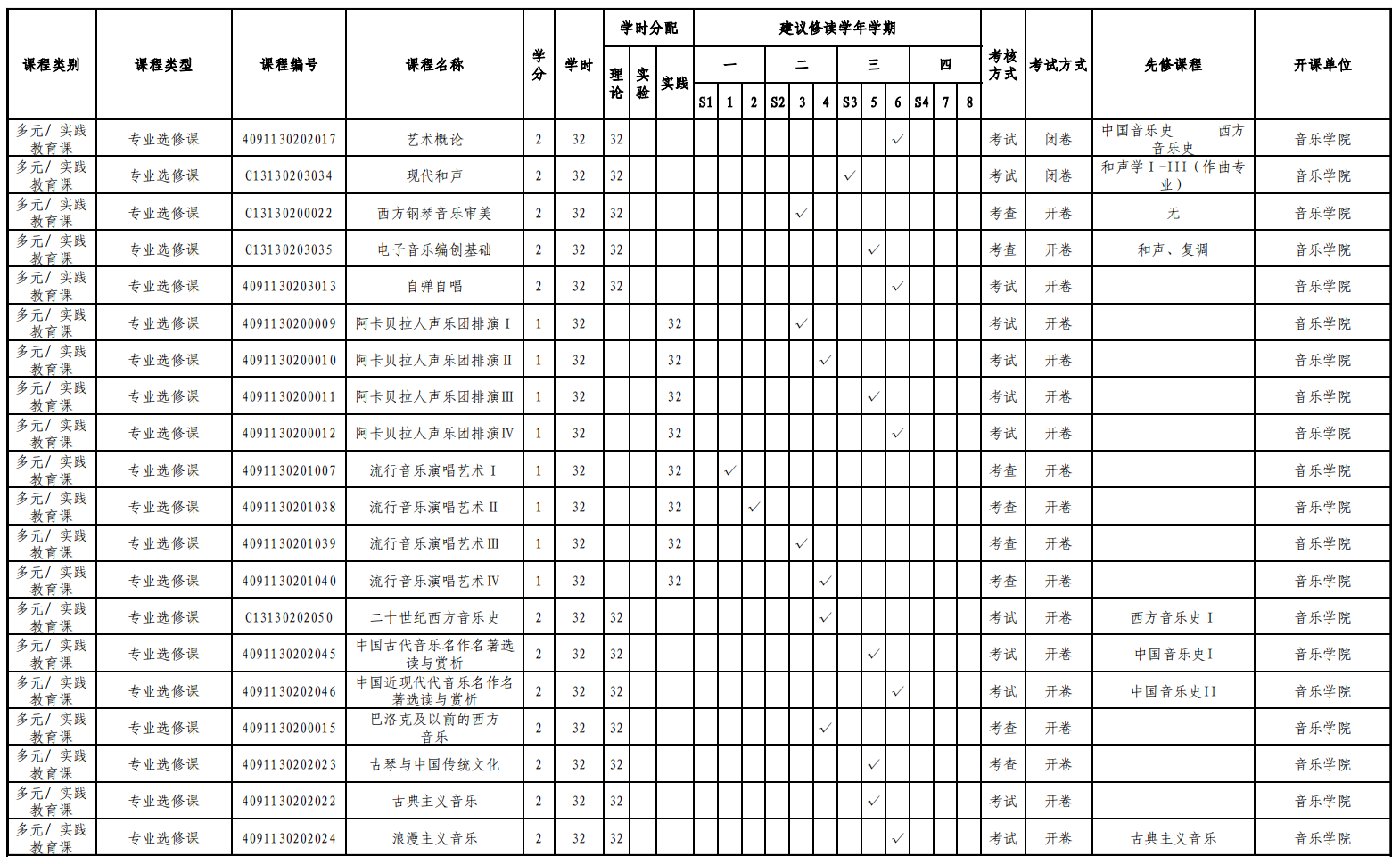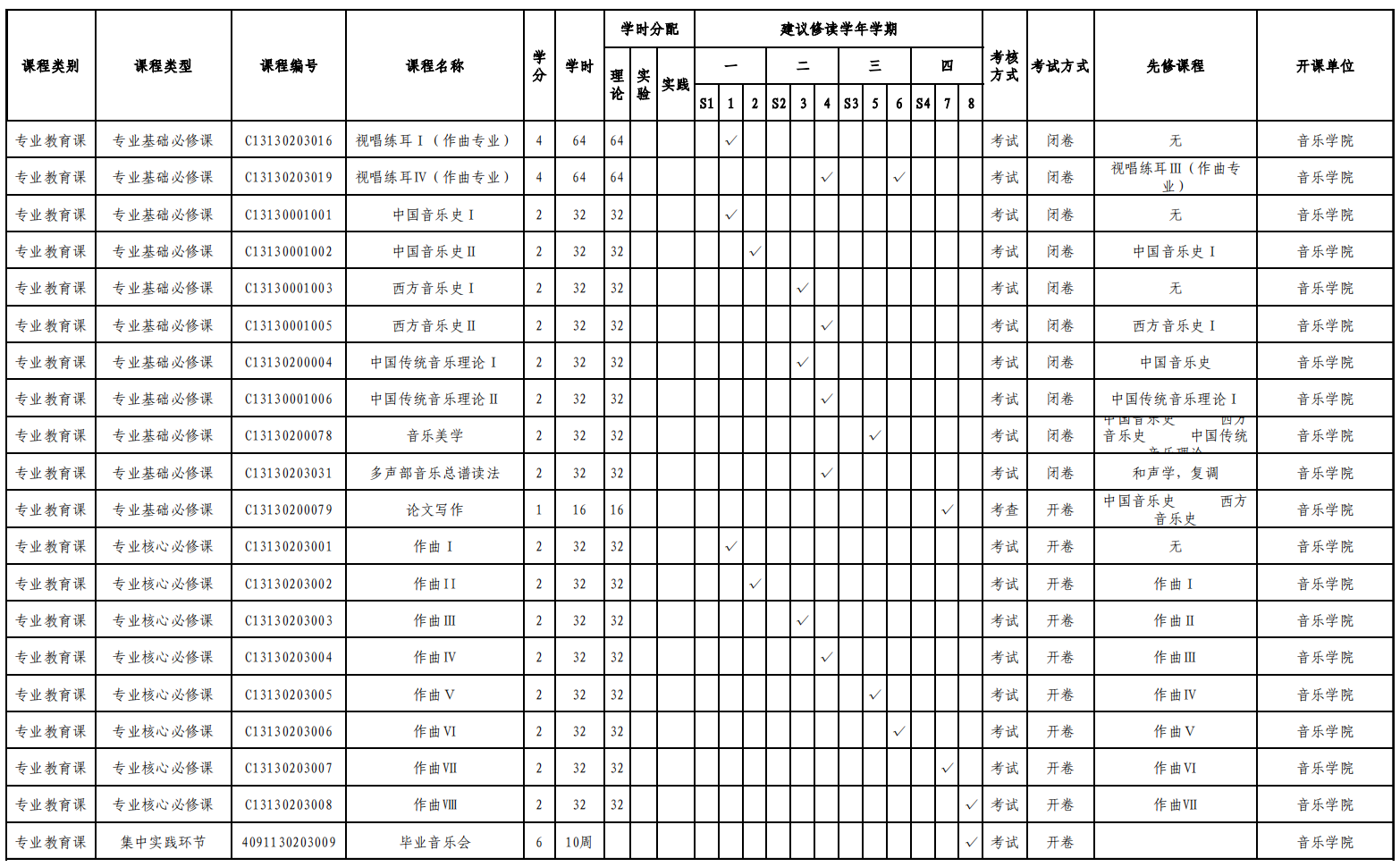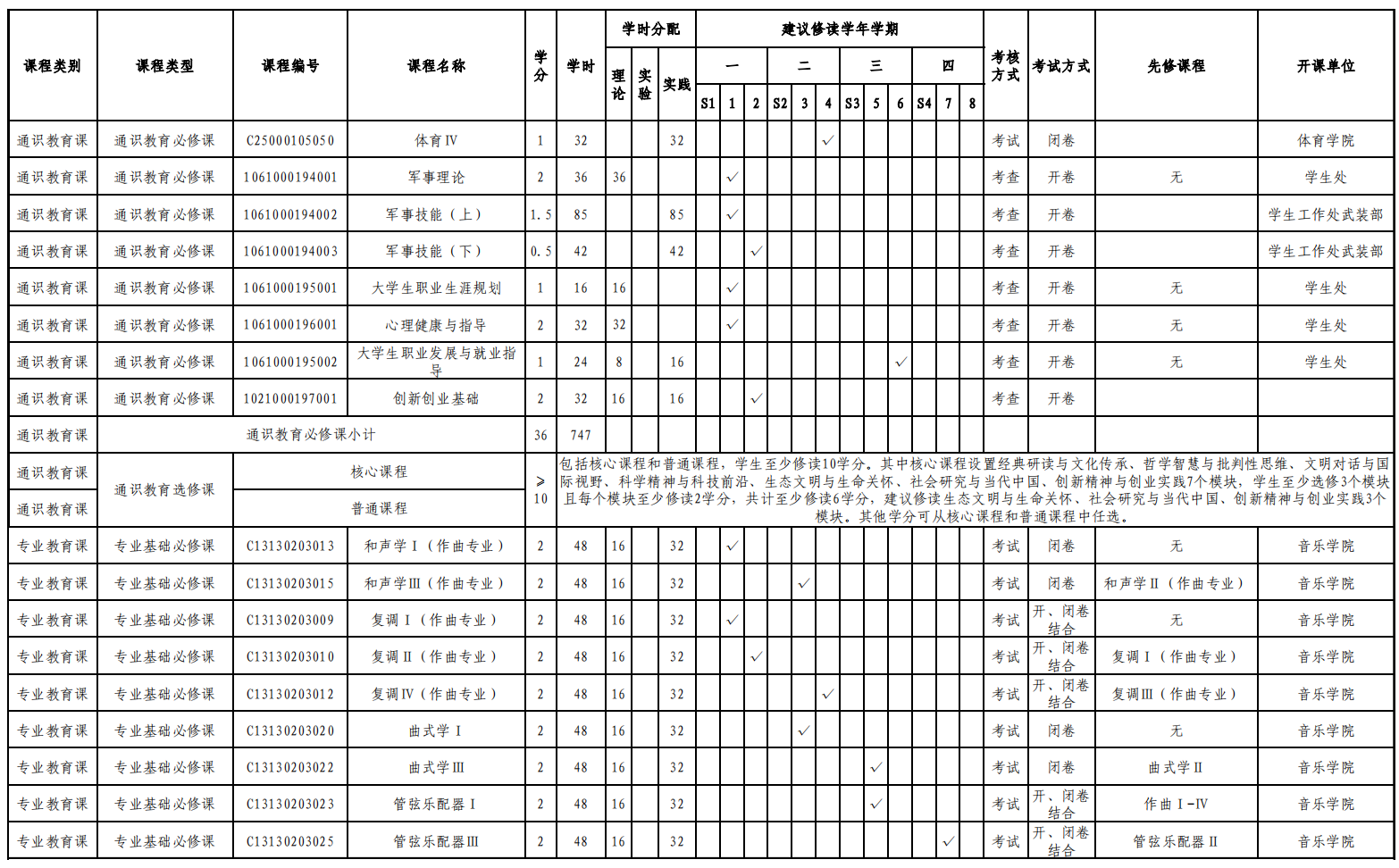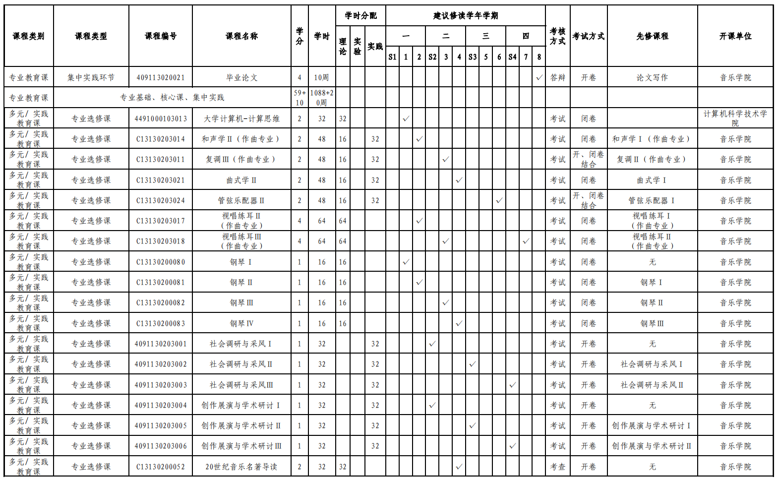 (2)作曲专业学生需完成毕业论文一篇,并在第四学年举行毕业作品音乐会。