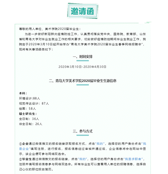 “抗疫阵不乱,求职线不断”-爱情岛 美术学院2020届毕业生春季网络双选会